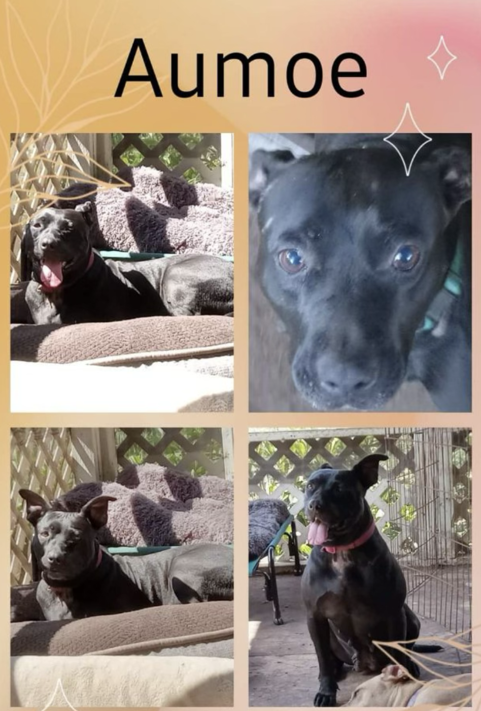 Meet Aumoe, a beautiful name that means "night," and she embodies the traits of self-assurance, independence, and confidence. Rescued from the brink of starvation in the lava fields, Aumoe has made an incredible recovery. Her resilience shines through in her sweet and gentle nature. From the moment she was rescued, she’s been a loving companion, getting along with everyone—cats included! Aumoe’s remarkable journey has shaped her into a loyal, affectionate, and calm soul who’s ready to be the perfect addition to your family. Give Aumoe the forever home she deserves, and let her light up your life! 🐶💕